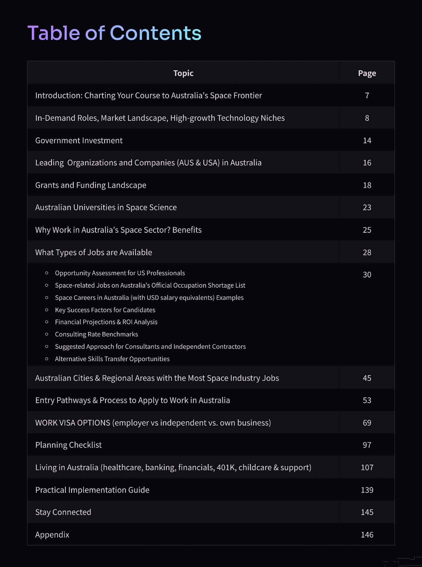Opportunity Down Under: Table of contents for your Australian Space Career Playbook.